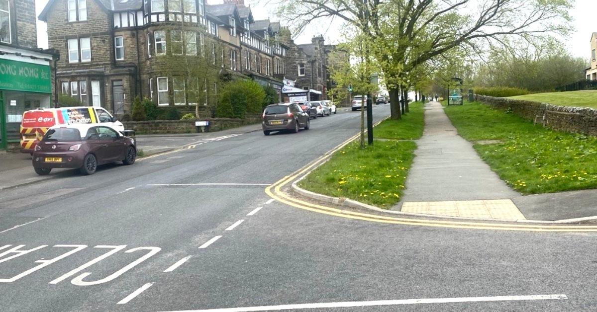 The junction of Otley Road and Harlow Moor Road, showing where the cycleway would be extended.