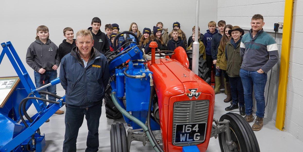Pictured inside Econ Engineering’s museum: Jonathan Lupton with members of Boroughbridge Young Farmers