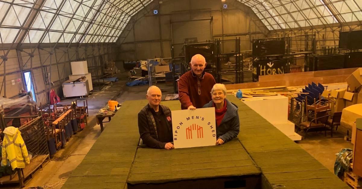 Stuart Martin (centre) and Hazel Barker of Ripon Community Poppy Project are pictured with Richard Thomson of Ripon Men's Shed on board the replica tank before the turret was fitted.